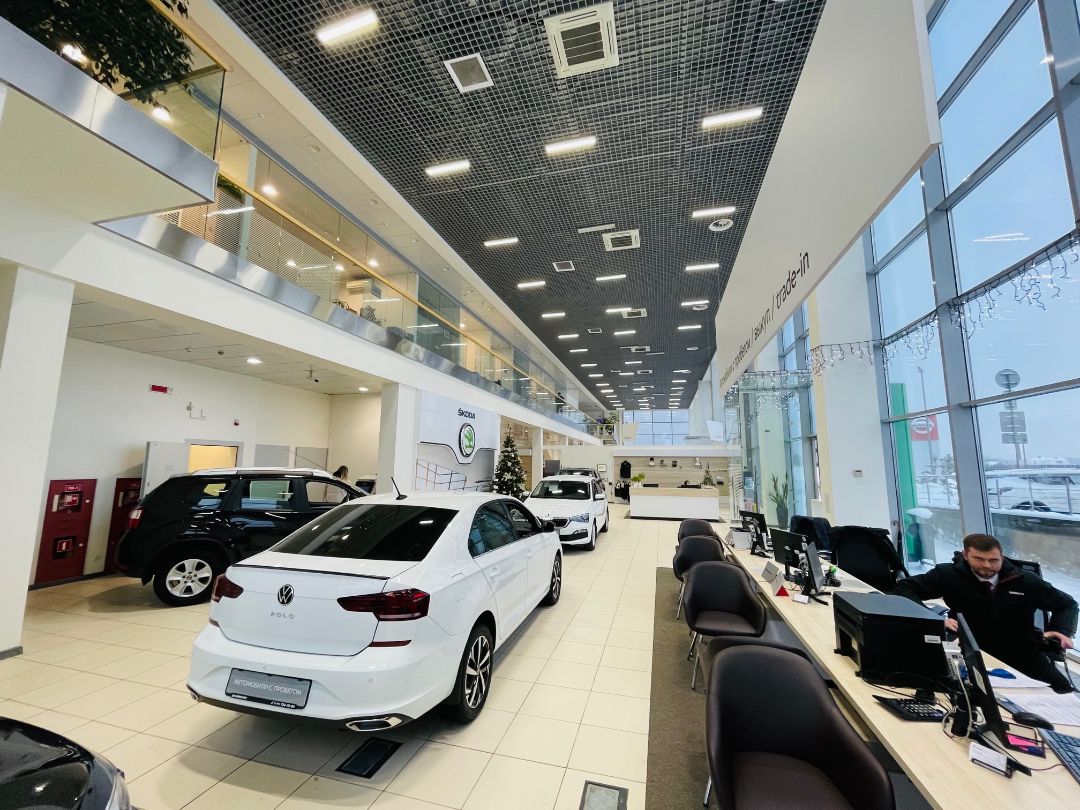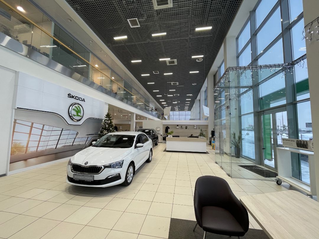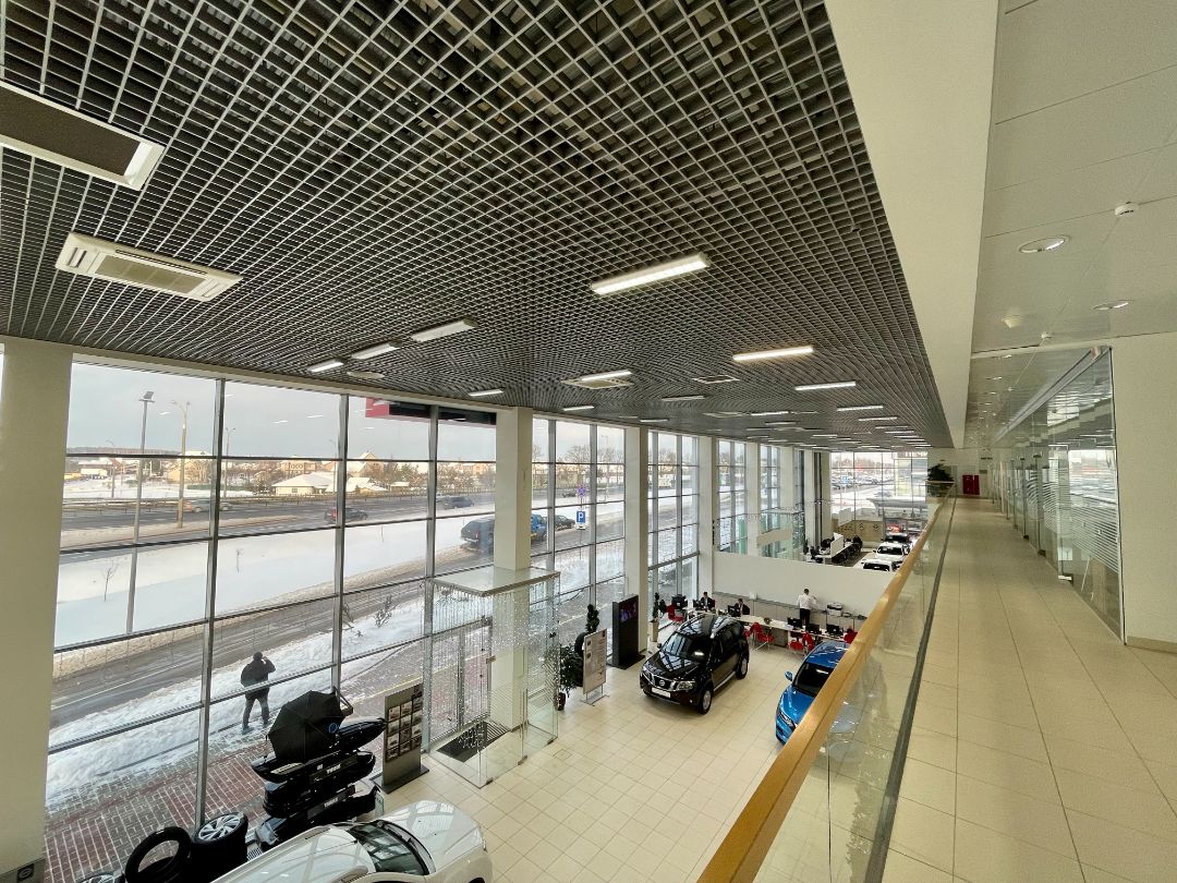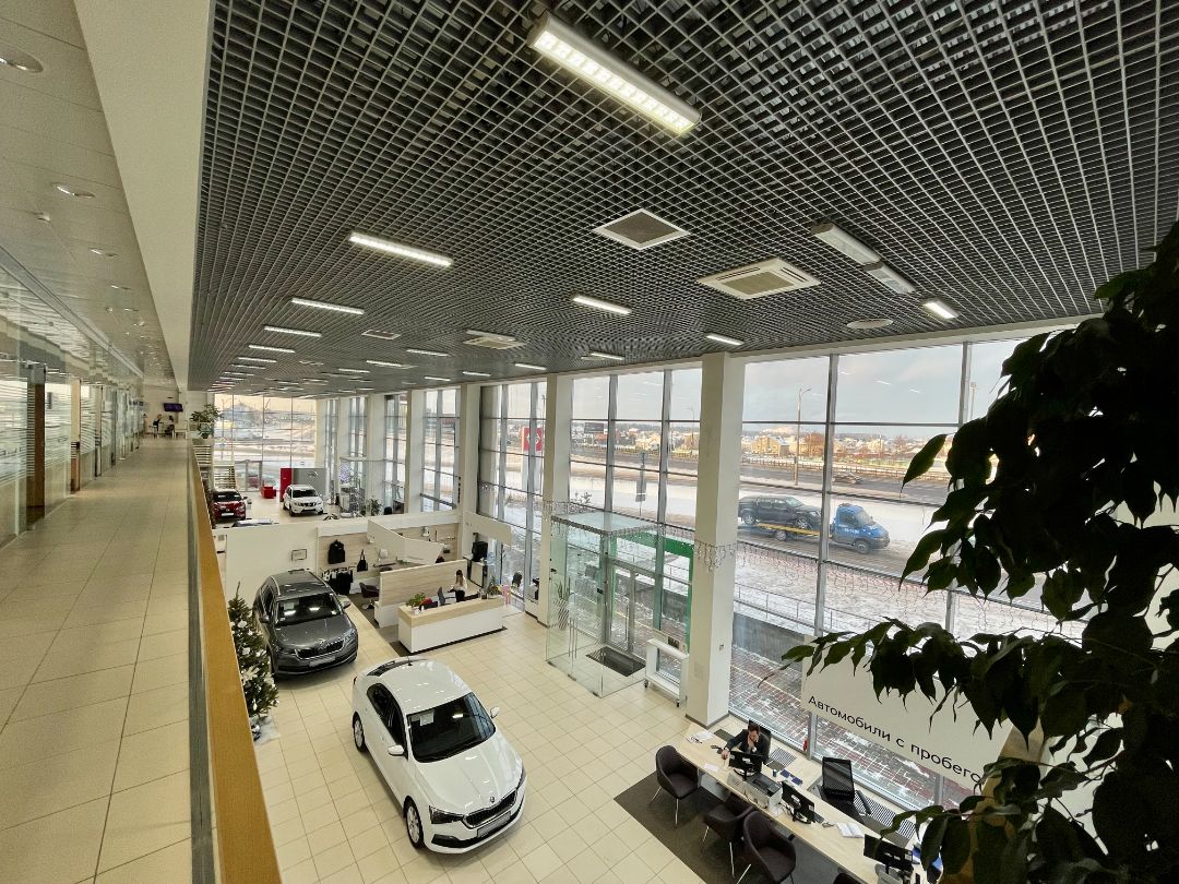 Здание дилерского центра включает техническую зону с 11 постами, ремонтную зону, кузовной и жестяной цеха, покрасочную камеру, мойки, склад запасных частей, а также вспомогательные зоны и помещения.
